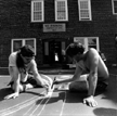 Brothers from Delta Kappa Epsilon paint fresh lines on their newly resurfaced court. During the last week, living groups have prepared for the arrival of the freshman class.