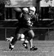An MIT receiver pulls down a pass during football practice Wednesday afternoon. Many fall sports have already begun practice for the upcoming session.