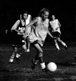 A soccer player moves the ball downfield during a practice scrimmage in front of Burton-Conner House yesterday.