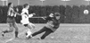 Heather Noyes '97 scores a goal for MIT in the last soccer match of the seaso on Wednesday. MIT won the game, beating Wheaton College 4-3.