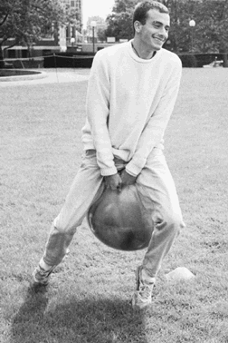 BOUNCY BOUNCY -- Jared Jonas '01 competes in a bouncy ball race during Greek Week.