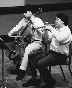 Stephen Tistaert '98 performs on the trumpet in the advanced music performace recital on Wednesday afternoon in Killian Hall.