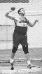 Patrick Dannen '98 makes his winning throw in the shot put on Saturday. MIT won the meet, beating out the local rival Tufts University.