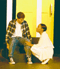 Jonna (Tara V. Perry '98) reminisces about when she first met Tim (Jesse Barnes '02) in Dramashop¹s production of "Beat Furrer" in Kresge Little Theater.