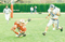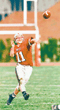 Baldemar Mejia '98 makes a diving catch in the end zone, scoring a touchdown in Saturday's game against UMass Boston. MIT won 4120.