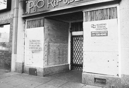 Pho République was boarded up after the fire. The owners of the store could not be contacted for comment.