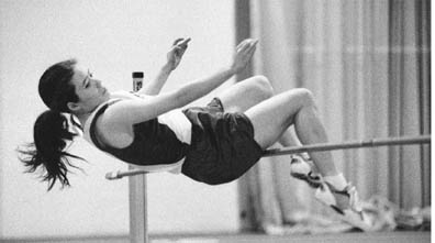 | Kay Sullivan '02 clears the bar in the women's track and field competition against six other local colleges Saturday. MIT placed third overall. |