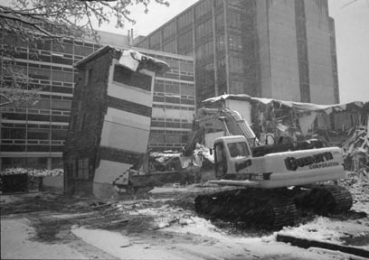 OUT With the old, in with new -- Building 20 is withering away piece by piece to give way to the new Stata complex.