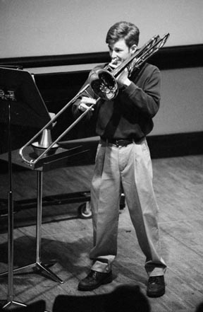 Dave Allmon ’01 performs the Sonatine pour Trombone et Piano by Jacques Casterede in a recital given in Killian Hall Monday.