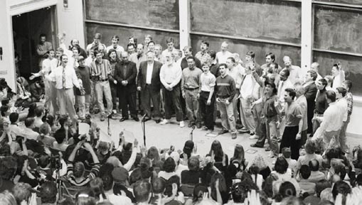 The Logs and alumni representing all fifty years of the group’s existence conclude the concert with a performance of MIT’s alma mater, Arise All Ye of MIT.
