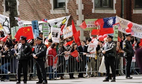 Protesters and supporters packed Massachusetts Avenue on Wednesday in anticipation of Premier Zhu Rongji’s visit to MIT.