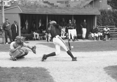 Ethan Goetz ’01 connects in Tuesday’s game against UMass Boston. MIT won the game 16-9.