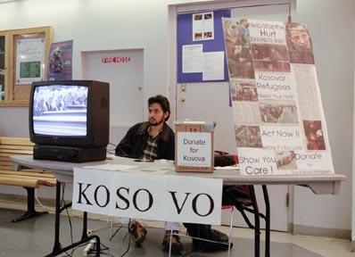 Belal M. Helal G of the Muslim Students Association donates his time to increase awareness and gather contributions for the Kosovo relief efforts.