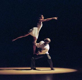 Movements in Time Dance Company dancers Olufemi A. Omojola and Nia M. Jetter perform “Fix Me Jesus”, a piece from Alvin Ailey’s Revelations, Saturday at the Roxbury Community Theater.