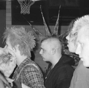 Local punks look on as The Ducky Boys take the stage in Saturday’s show.