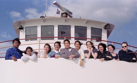 Lords of the Ring--The Class of 2001 Ring Committee celebrates the distribution of this year’s Brass Rat with a cruise in Boston Harbor Sunday.