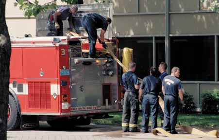 The Cambridge Fire Department responded to a small fire at Building 18. A graduate student suffered minor burns when pentane fumes flashed.