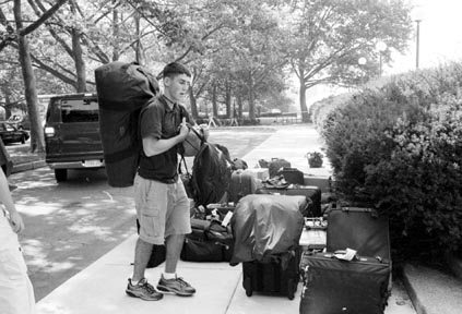 Alex Phillips ’03 arrives from the airport via a free shuttle from the IFC.