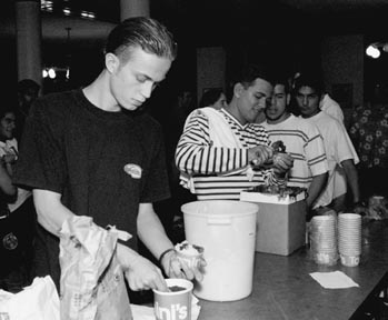 Gokhan Demirkan ’03 enjoys Toscanini’s ice cream at the IFC ice cream social for international students.