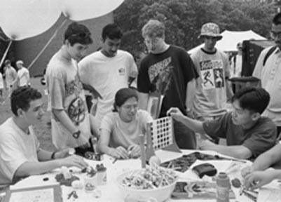 As part of the MIT Real World activities, freshman gather on Kresge Oval to relax and play games.
