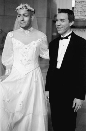 Ricardo Ramirez '02 and Jason Parris '02, members of GAMIT, participate in a symbolic marriage to honor National Freedom To Marry Day.