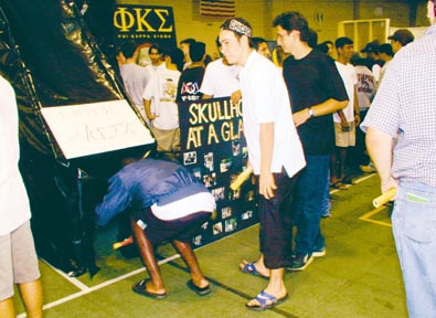 Getting sucked in -- Freshman Marc Farrell enters Phi Kappa Sigma’s Vortex during Residence Midway last night in Johnson Athletic Center.