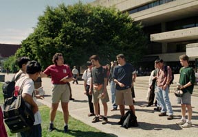 Joost Bonsen G leads new graduate students on a tour of the campus as part of the Graduate Student Orientation yesterday afternoon.