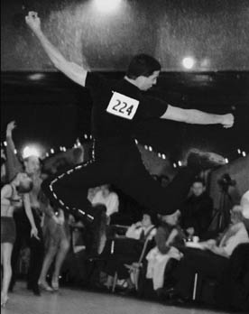 | Michael Posner G executes a leap in the Harvard Invitational Ballroom Dance Competition last weekend. |