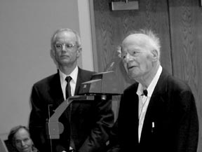 Nobel Laureate Hans Bethe (right) gave yesterday’s Physics Colloquim on supernovae and gravitational waves.