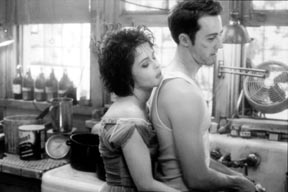 Helena Bonham Carter as Marla cozies up to the film’s narrator, played by Edward Norton, in Fight Club.