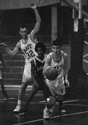 Connie Yang ’03 hurls the ball to a teammate during Friday’s Tip-Off Tournament game, which the Engineers dropped 35-65 to Eastern Nazarene College.