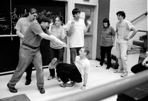 Members of comedy improv troupe Roadkill Buffet horrify the audience with “Nightmare,” a skit where seemingly harmless activities during the day are re-enacted in a hellish manner.