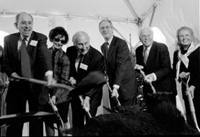 Diggin’ it -- President Charles M. Vest, Ray and Maria Stata, Chairman of the Corporation Alex d'Arbeloff and Alexander W. Dreyfoos, Jr. break ground for the new Stata Center.