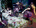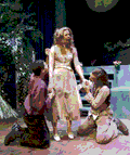 (left) Titania the Fairy Queen (Rydia Q. Vielehr ’03) fawns over the transformed Bottom (Sarah R. Cohen ’00) after having a love spell cast on her.
