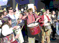 In addition to the sideshows and speakers, another attraction at the rally was an African-style dance in which protesters danced to the sounds of various drums and improvised percussion instruments.