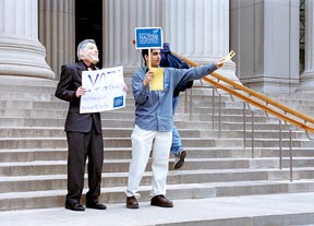 Looking for a few good interns -- Class of 2003 presidential candidate Sina Kevin Nazemi ’03 recruited Bill Clinton lookalike Jeffery Monk ’03 to help attract student voters.