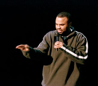 Polo (Marc Graham G) takes the mike at Hip Hop Fest 2000, an arts event held last Friday in Johnson athletic center.