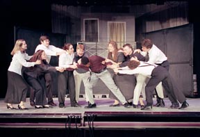 Everybody Loves RoberT -- Friends fight over inviting Robert (Charles Floyd ’02) to dinner in the Musical Theater Guild’s production of Company.