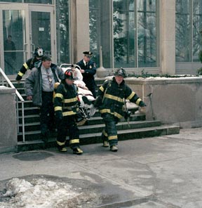 Cambridge fire fighters responded to an explosion in Building 2 Wednesday in which two students were injured.