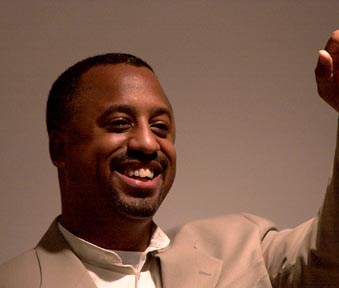 Richard O. Bryant, a Ph.D. student in the department of urban studies and planning, speaks to an audience of Camfield tenants about his plans to bridge the “digital divide.”