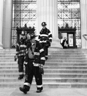 Crying Wolf? -- Cambridge firefighters responded to a false alarm in Building 9 Wednesday night. One fireman speculated that the alarm was triggered by a cigarette.
