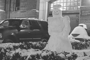 A snowman of a Campus Police officer mysteriously appeared in front of the CP’s headquarters early Saturday morning.