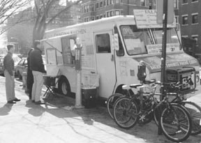 Students line up outside Boutros Youssef’s CousCous Kitchen on Mass. Ave.