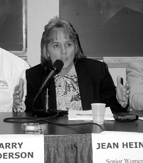 Jean Heiney, Senior Women’s Administrator, answers questions on the future of athletics funding during the Athletics Forum last night in 10-250.
