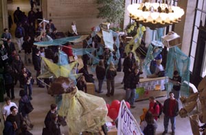 Students display articulate blimp and puppet figures in Lobby 10 last week. The designs were part of a 16.00 (Introduction to Aerospace Engineering and Design) project.