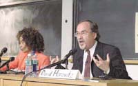 Noted political columnist David Horowitz, who gained notoriety recently over a controversial advertisement, came to MIT for a well-attended debate on Wednesday.