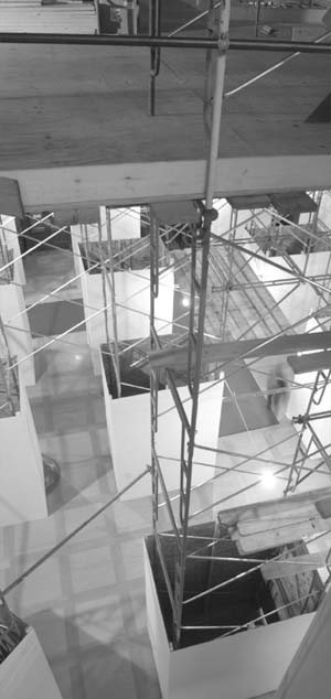 Scaffolding was erected in Lobby 7 over spring break in preparation for major construction.