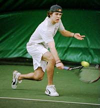 The number one doubles match had Jeffrey P. Augustyn ’03 and Kolesnikov facing off against two worthy opponents. Both teams struggled to hold serve early in the set. MIT and Bowdoin combined for nine service breaks in the doubles set, which is awarded to the team that reached eight games first.