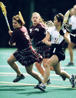 Debbie Cheng ’04 strides through the Springfield defense during the women’s lacrosse game on Saturday. MIT lost 13-9.