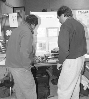 Kunjan Rana, a student from the Henry Wadsworth Longfellow School, gave a presentation on shockwave analysis at the MIT/Cambridge Science Expo on Wednesday.